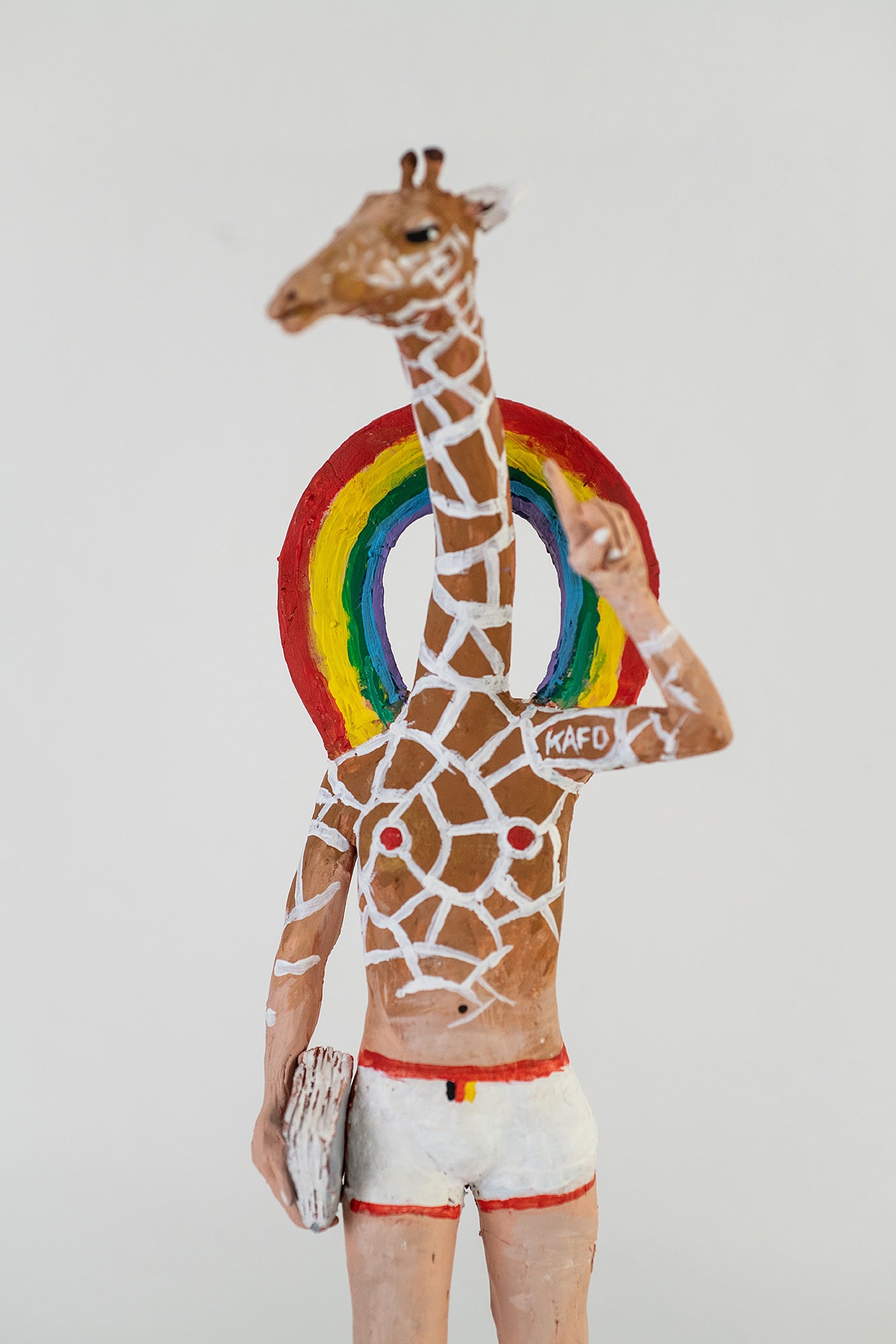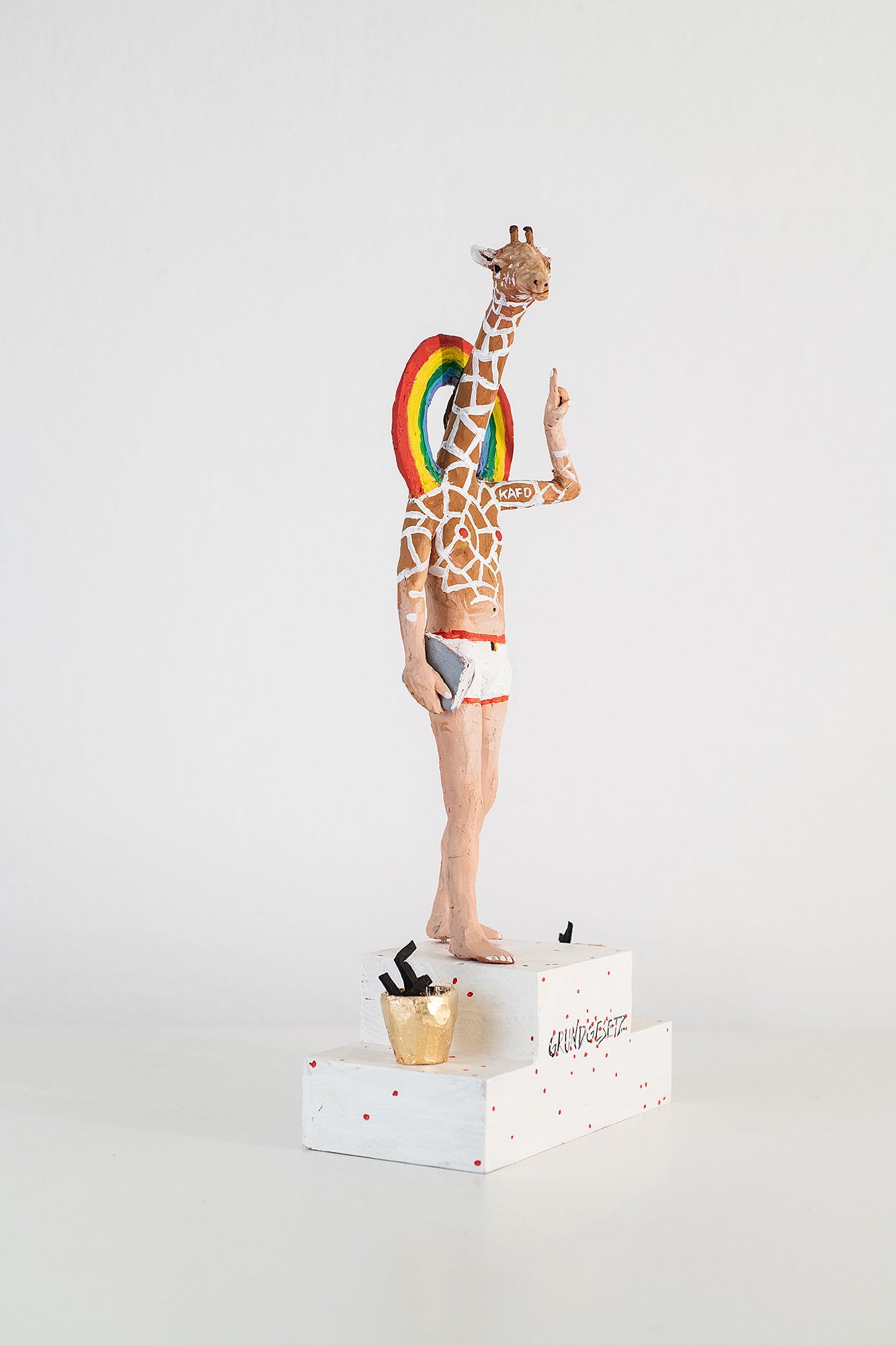 "Bundesgiraffe 0030/009" by Volker März. One-off sculpture in clay. Hand-made, hand-painted.